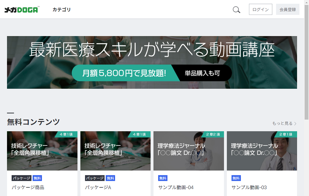 会員登録や動画再生等、フロントサイト側の動作をご確認いただけます。